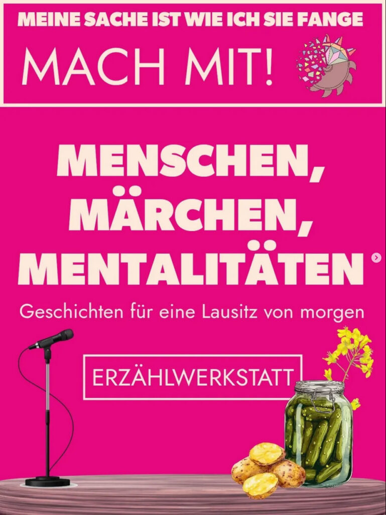 Hast du Lust (d)eine Geschichte zu erzählen? Früher war die Lausitz voll von ihnen. Die Menschen erzählten sich von Wassermännern, den Lutki, der Pśezpołdnica und manch einer hatte sogar einen Glücksdrachen auf dem Dachboden. Dann änderte sich die Welt. Tagebaue fraßen sich durch Dörfer, manche Geschichten verstummten und neue kamen dazu. Aber wer erzählt sie heute?